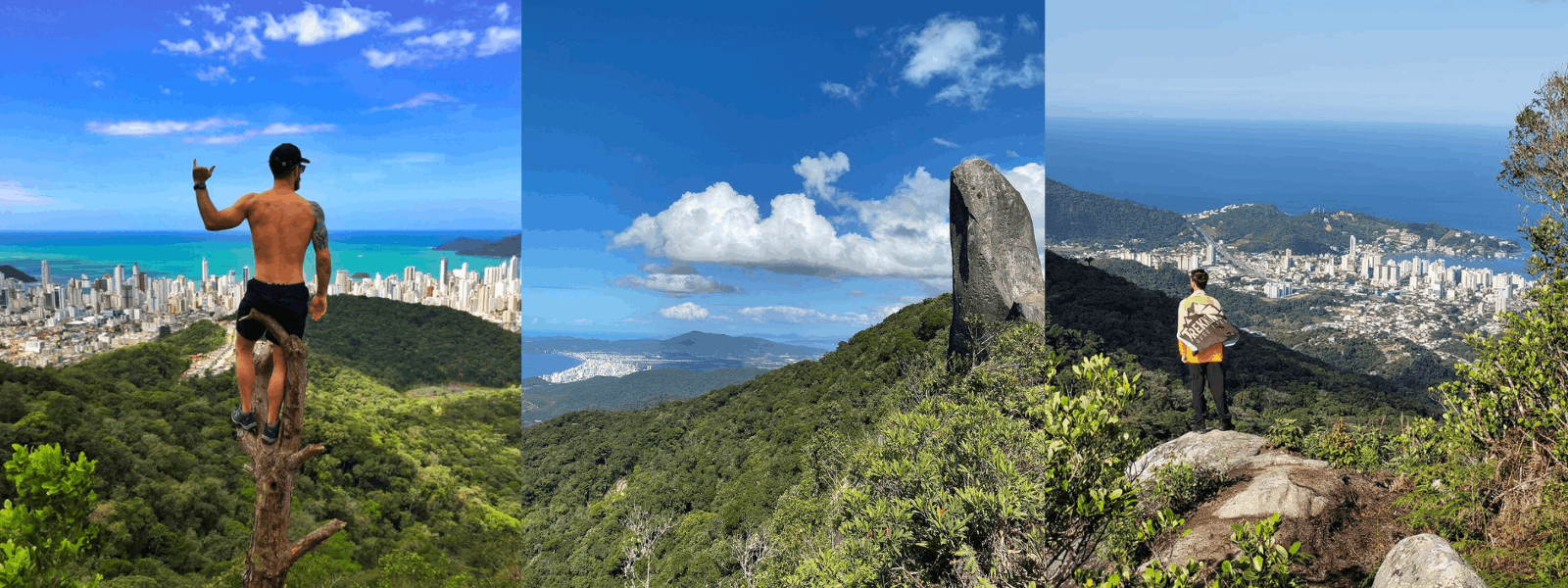 Já a Trilha do Pico da Pedra, em Camboriú, tem percurso mais longo. A caminhada pode levar de 1h30 a 2h, com trechos de inclinação moderada. A recompensa é uma vista aberta da região, com sensação de isolamento e contato maior com a natureza. Boa opção para quem busca trilha intermediária e menos movimento.