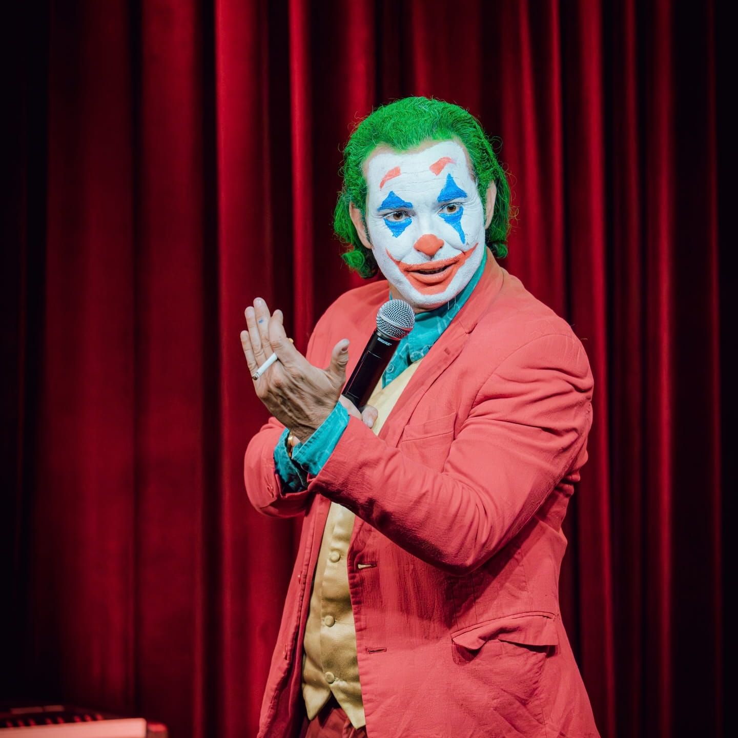 Stand-up Humor, ilusionismo e caos criativo se misturam no espetáculo do comediante e ilusionista chileno Maurício Dollenz. Com o personagem “O Coringa”, o artista conduz uma apresentação que combina stand-up, truques com cartas e interação.