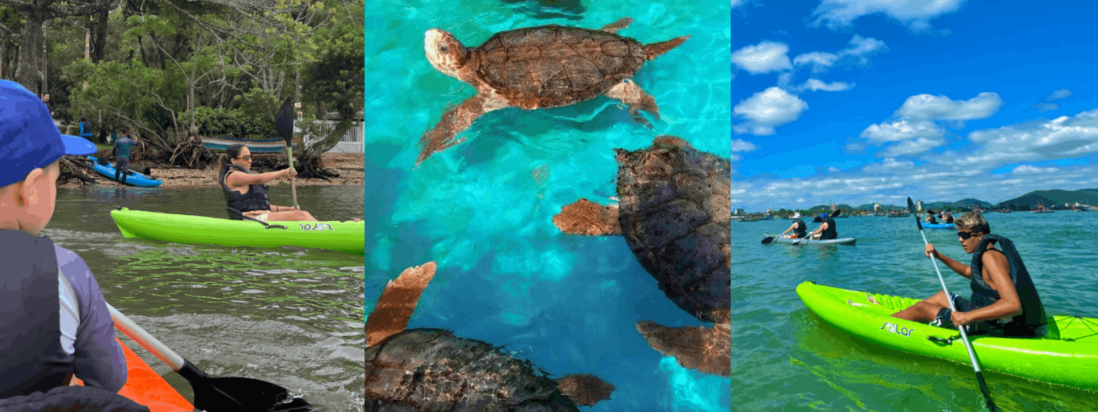 Fora do cartaz e dentro do mar: o passeio de caiaque com tartarugas em Penha
